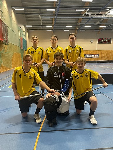 Övre raden: Wilmer Sjöäng, Milo Adlivankin, Louie Nyman Nedre raden: Måns Kvarndal, Liam Eriksson, Alfred Larsson